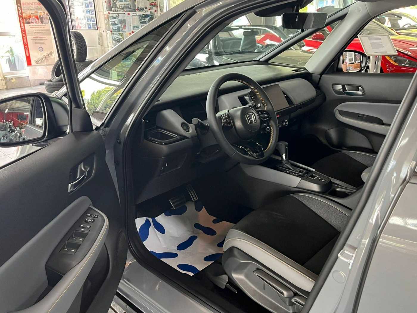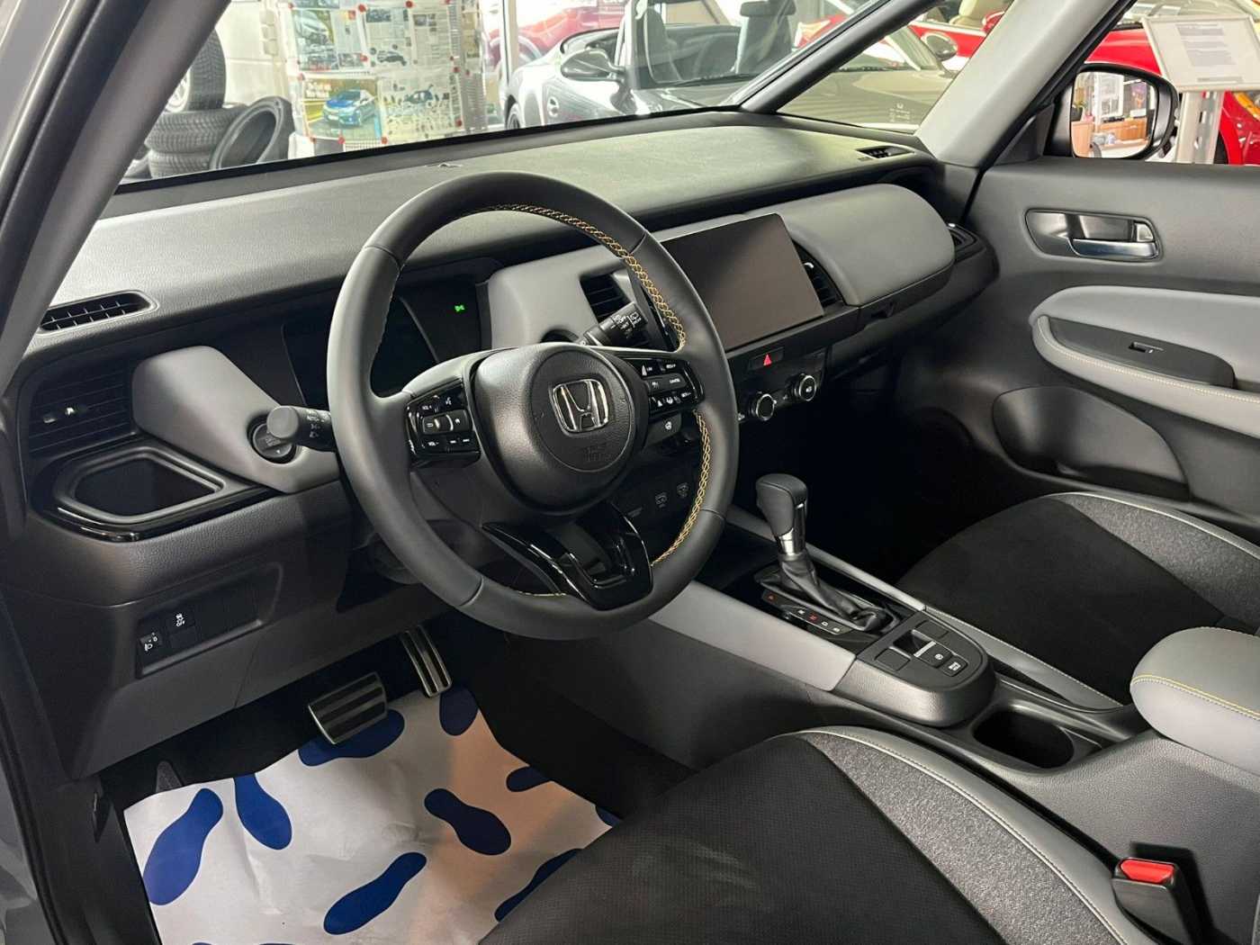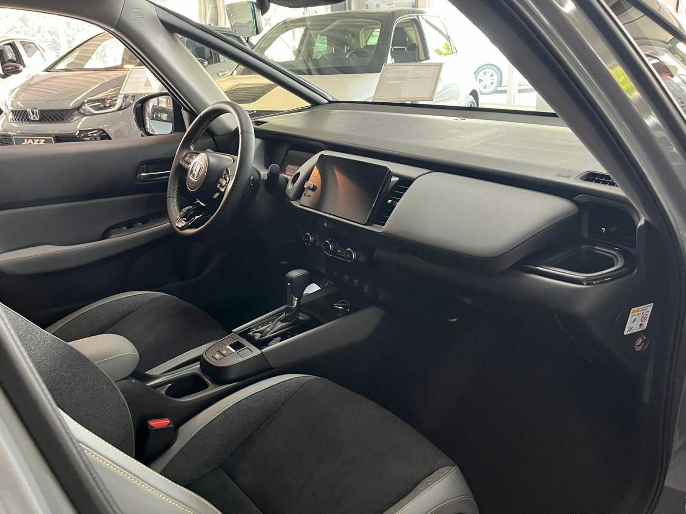 4 Lautsprecher, Airbag Beifahrerseite abschaltbar, Aktive Kopfstützen vorn, Anhänger-Stabilisierungs-Programm (TSA), Anzeige für Reifendruck im Display, Auspuffblende verchromt, Autom. Begleitfunktion der Beleuchtung (Coming Home, Leaving Home), Automatische Fahrlichtschaltung / Lichtsensor, Außenspiegel elektr. anklappbar, Außenspiegel elektr. verstell- und heizbar, beide, Außenspiegel mit Bordsteinautomatik, rechts, Außenspiegel schwarz lackiert, Blinkleuchte in Außenspiegel integriert, Bremsassistent, Bremsenergierückgewinnung (Rekuperationssystem), Dachantenne im Haifischflossen-Design, Dachspoiler schwarz, Einparkhilfe vorn und hinten, Elektr. Bremskraftverteilung, Elektromotor 90 kW (Hybridantrieb), Fahrassistenz-System: Auspark-Assistent, Fahrassistenz-System: Berganfahrhilfe, Fahrassistenz-System: Eco Assist (Econ Modus), Fahrassistenz-System: Fahrprofilauswahl (Drive Mode), Fahrassistenz-System: Fernlichtassistent (HSS), Fahrassistenz-System: Intelligente Geschwindigkeitsanpassung (Tempomat) mit Abstandsregelung I-ACC, Fahrassistenz-System: Kollisionswarnsystem mit Bremseingriff und Fußgängererkennung (CMBS), Fahrassistenz-System: Sicherheitssystem mit automatischem Notruf (ERA GLONASS / eCall), Fahrassistenz-System: Spurhalteassistent (LKAS / LDW), Fahrassistenz-System: Spurverlassenswarnung (Lane Departure Warning, LDW), Fahrassistenz-System: Stauassistent (LSF), Fahrassistenz-System: Totwinkel-Assistent, Fahrassistenz-System: Verkehrszeichenerkennung, Fensterheber elektrisch vorn und hinten, mit Auf-/Ab-Automatik, Freisprecheinrichtung (Bluetooth) mit Sprachsteuerung, Gepäcknetz an Vordersitzlehne links, Gepäcknetz an Vordersitzlehne rechts, Gepäckraumabdeckung / Rollo, Getriebe Automatik stufenlos - ECVT, Getränkehalter vorn, Gurtstraffer, Heckleuchten LED, Hybrid 90 kW (Motor 1,5 Ltr. - 79 kW), Infotainment-System: Honda Connect mit 9" Touchscreen / Navigationssystem / Internetbasierende Dienste / DAB-Tuner, Innenspiegel rahmenlos, Isofix-Aufnahmen für Kindersitz, Karosserie: 5-türig, Knieairbag Fahrerseite, Kopf-Airbag-System, Lenkrad heizbar, Lenksäule (Lenkrad) höhenverstellbar, Leseleuchten vorn, LM-Felgen, Modellpflege, Motorsound-System (Acoustic Vehicle Alerting System, AVAS), Multi-Info-Display (i-MID), Multifunktion für Lenkrad, Nebelscheinwerfer LED, Otto-Partikelfilter (OPF), Parkbremse elektrisch, Reifen-Reparaturset, Rückfahrkamera, Rücksitz geteilt / klappbar, Rücksitze im Fahrzeugboden versenkbar, Schadstoffarm nach Abgasnorm Euro 6d, Schalt-/Wählhebelgriff Leder, Scheinwerfer LED, Seitenairbag hinten, Seitenairbag vorn, Seitenairbag vorn mitte (Center-Airbag), Seitenschutzleisten schwarz, Sitz vorn links höhenverstellbar, Sitzbezug / Polsterung: Stoff/Kunstleder / Velours, Sitzheizung vorn, Smartphone Schnittstelle (Apple CarPlay & Android Auto), Sonnenblenden mit Make-up-Spiegel, Sport-Pedalerie, Steckdose (12V-Anschluß) in Armaturentafel, Stoßfänger Wagenfarbe, Türgriffe außen Wagenfarbe, USB-Ladeanschluß hinten (2-fach), USB-Ladeanschluß vorn, USB-Schnittstelle, Verglasung hinten abgedunkelt (Privacy Glass), WLAN-Hotspot, Zierleisten Stoßfänger Schwarz glänzend, EU-REIMPORT, Tageszulassung, Sondernachlass AKTIONSPREIS, UPE: 32.490,00 EUR,Irrtümer und Zwischenverkauf vorbehalten. Alle Angaben ohne Gewähr