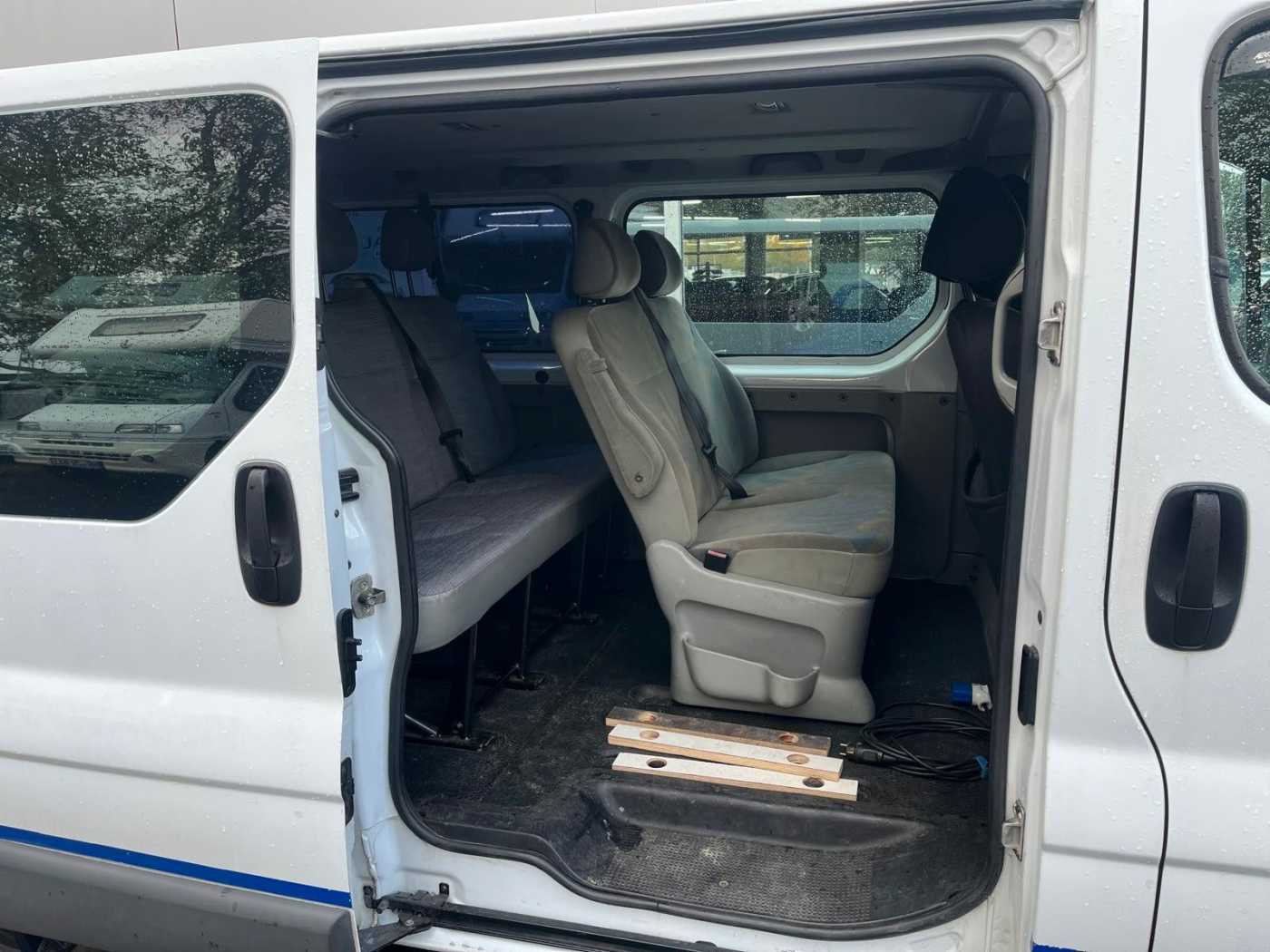 Airbag Fahrerseite, Ausstattungs-Niveau E1, Bremsassistent, Elektr. Bremskraftverteilung, Heckklappe mit Verglasung, Karosserie/Aufbau: Kombi Standard, Motor 2,5 Ltr. - 107 kW Diesel dCi FAP KAT, Radstand 3498 mm, Safesicherung, Schiebetür Lade-/Fahrgastraum rechts mit Ausstellfenster, Seitenschutzleisten, Sitzbezug / Polsterung: Stoff, Sitze im Fahrerhaus: Beifahrereinzelsitz, Sitze im Lade-/FG-Raum: 1.Reihe, 3er-Sitzbank, Sitze im Lade-/FG-Raum: 2.Reihe, 3er-Sitzbank, Vollverglasung